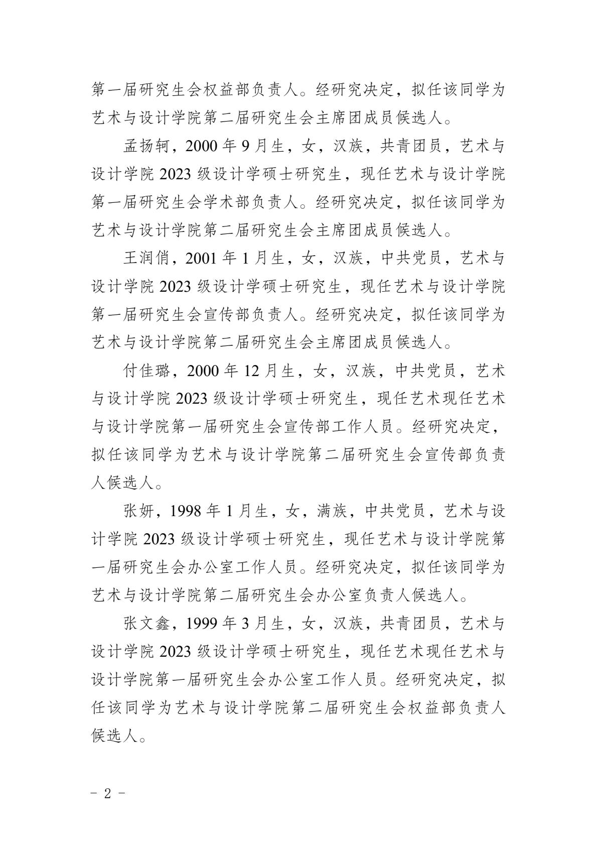 挺膺担当砺青春——关于2024-2025学年yl23455永利第二届研究生会主席团成员及部门负责人候选人的公示