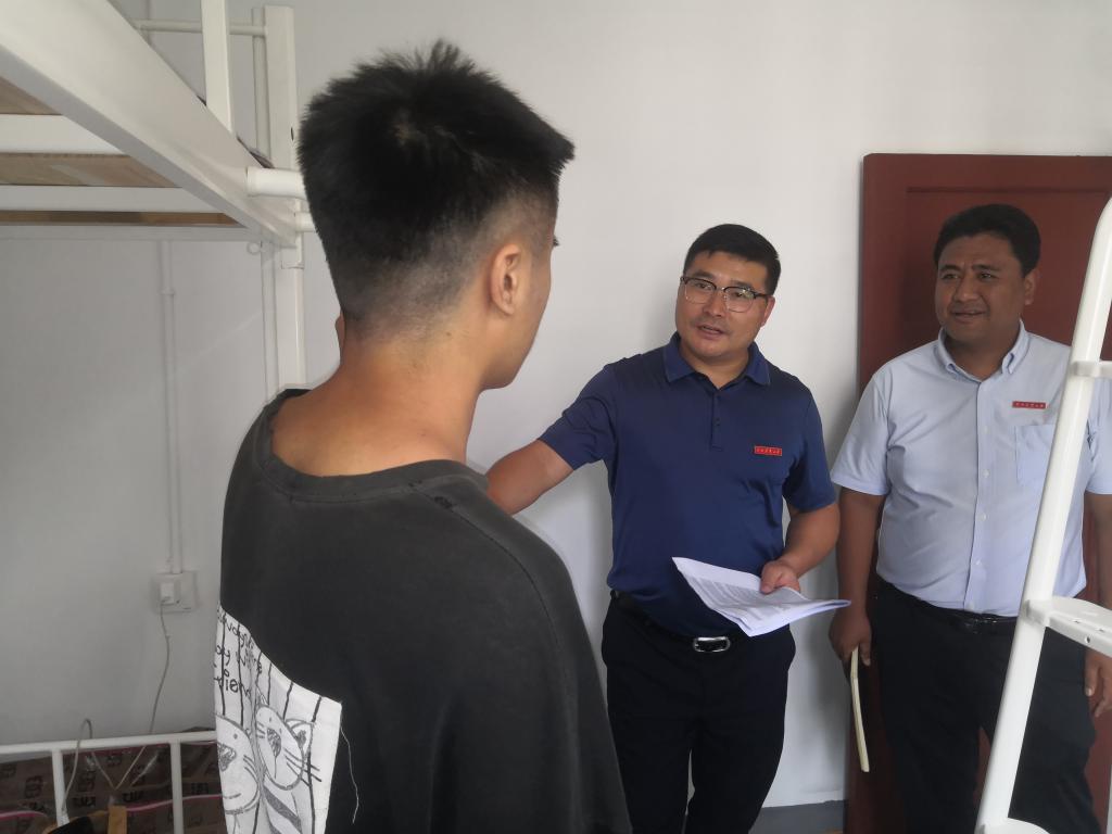 公司党委书记张德国、经理李生森、副书记李浩带领全体班主任和辅导员分别走访不同班级的新生宿舍,与同学们亲切交谈,了解同学们初来公司的感受,耐心聆听同学们的需求,鼓励大家要稳步提高自我管理能力,注意人身财产安全,提高自我保护意识,积极营造良好的宿舍氛围,切实平衡好学习和生活,尽快适应老员工活。班主任和辅导员也和同学们进行了亲切交流,嘱咐同学们要遵守公司的各项规章制度,着重强调要谨防电信网络诈骗,切实为同学们迈好老员工活笫一步奠定了坚实思想基础。