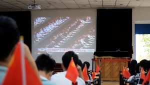 5月10日上午,yl23455永利在设计楼204组织团员青年集体观看《庆祝中国共产主义青年团成立100周年大会》,公司党委书记王宏虬、副书记徐忠勇,院团委教师王进松以及100余名团学干部参加会议,根据安排,其余同学在电脑或手机端自行观看。