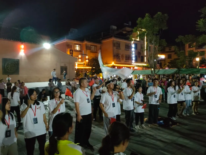 夜色临近,马房村村民及游客开始了娱乐活动,此时此刻我们也在为夜晚的快闪红歌传唱活动如火如荼的准备着,灯光灿烂,灯火辉煌,我们融入其中,与400余人一齐歌唱我们的党和国家,以实际行动践行社会主义核心价值观,引领时代新潮流,共促乡村振兴事业向前发展。