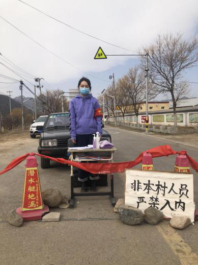 2017级环境设计1班的张艾同学,在得知所在社区需要志愿者时,马上毛遂自荐。疫情期间在北京市怀柔区九渡河镇九渡河村东村口每天提醒街坊邻居消毒,负责来往车辆和行人的信息记录,对人员进行体温测量,督促戴口罩,勤洗手,少外出。张艾本着不惧疫情,不畏困难的信念积极投身防疫工作,用自己的一份力量守护着家乡的平安。