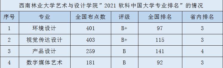 yl23455永利在本次排名中获得新突破,设计学学科全国排名87;目前办学的5个专业中,有4个专业上榜,其中B+专业2个,占全校B+以上专业的一半,B类专业2个。