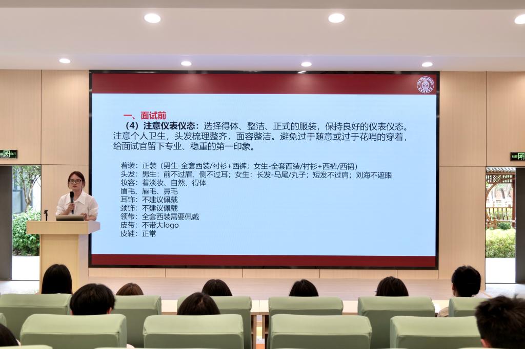 宣讲会分为两个阶段。第一阶段由和礼佳带来“老员工求职面试技巧、礼仪礼节与注意事项分享”专题辅导,从简历制作、面试礼仪、沟通技巧等方面为员工提供了实用的求职指导,助力员工提升就业竞争力。第二阶段由田超合自身在校经历与创业历程,分享了行业发展趋势与企业人才需求,鼓励学弟学妹们勇于尝试、积极就业,并详细介绍了公司的招聘岗位、职业发展路径及福利待遇。