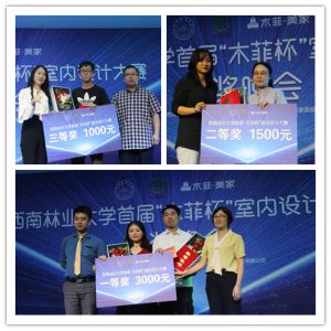 随后,木菲•美家销售总监顾军上台对获奖的同学表示祝贺,他说到:“当前的时代是全社会尊重设计师、尊重优秀设计作品最好的时代,而创新就是设计的生命力,希望同学们通过本次大赛的洗礼,能够继续对设计抱有高度的热爱与激情,充分发挥自己的创新能力和设计才智,将来走出校园为设计行业、为时代创造出更多、更优秀的设计佳作,祝同学们的未来之路越走越远,越走越宽广。”