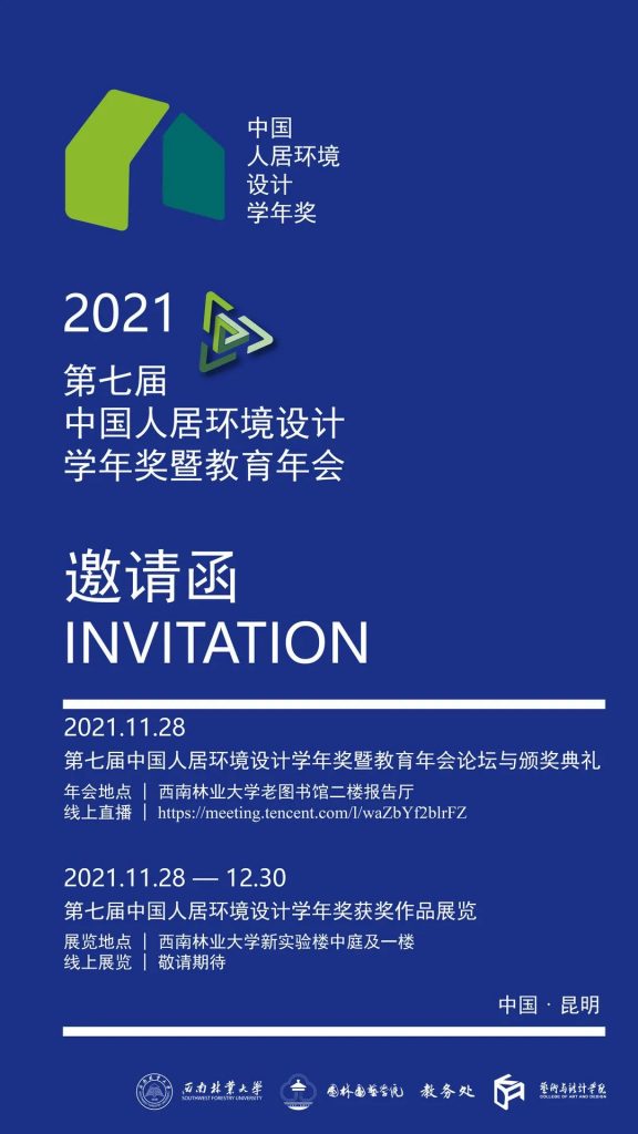 04  参加院校  中国各类开设城市设计、建筑学、景观学、风景园林设计、环境设计、室内设计、艺术设计等专业的高等院校大二、大三、大四在校老员工、应届毕业生、研究生。(含港澳台地区)05  学术支持  《装饰》 《世界建筑》06  活动支持  清控人居控股集团  筑巢投资集团                                                                                                                             本届主题:空间的弹性    弹性,最初的意思来自物体(尤指固体)在外力作用下形变的能力,外力消失后又可以恢复原形。弹性的概念引入空间,则包含有多重意味:首先,是变化的可能性;其次,是一种过渡的系,尤其在一些转折处;第三,则是一种修复的能力(或者说自我恢复的能力)。今天,我们来讨论空间的弹性,还有一重背景:即这是一个快速变迁的时代,任何层面的事物都可能面临大的更迭,同时更迭的节奏也日益加快。空间的改造成为日常化的现象,在这样的现象背后,既有资源的虚掷(社会成本、经济成本),又有情感的迷惘,带来无形而难以言表的焦虑。空间的弹性,或许可以有助于产生情感(认知)的锚点,也可能有助于提升社会的整体效率。当变化成为既定的主题时,我们对于空间的判断标准可能也要有所调整。“永恒”的概念在瓦解,但我们并不希望虚无成为主题,弹性的价值在此刻就得以显现。弹性未必是最终的解决之道,但对弹性的思考有助于我们面对“变化”。2021年年会活动安排第七届中国人居环境设计学年奖暨教育年会论坛与颁奖典礼地点:yl23455永利老图书馆二楼报告厅时间:2021年11月28日(周日)腾讯会议直播:https://meeting.tencent.com/l/waZbYf2blrFZ第七届中国人居环境设计学年奖获奖作品展览地点:yl23455永利实验楼中庭及一楼时间:2021年11月28日——2021年12月30日演讲嘉宾魏浩波(建筑设计)